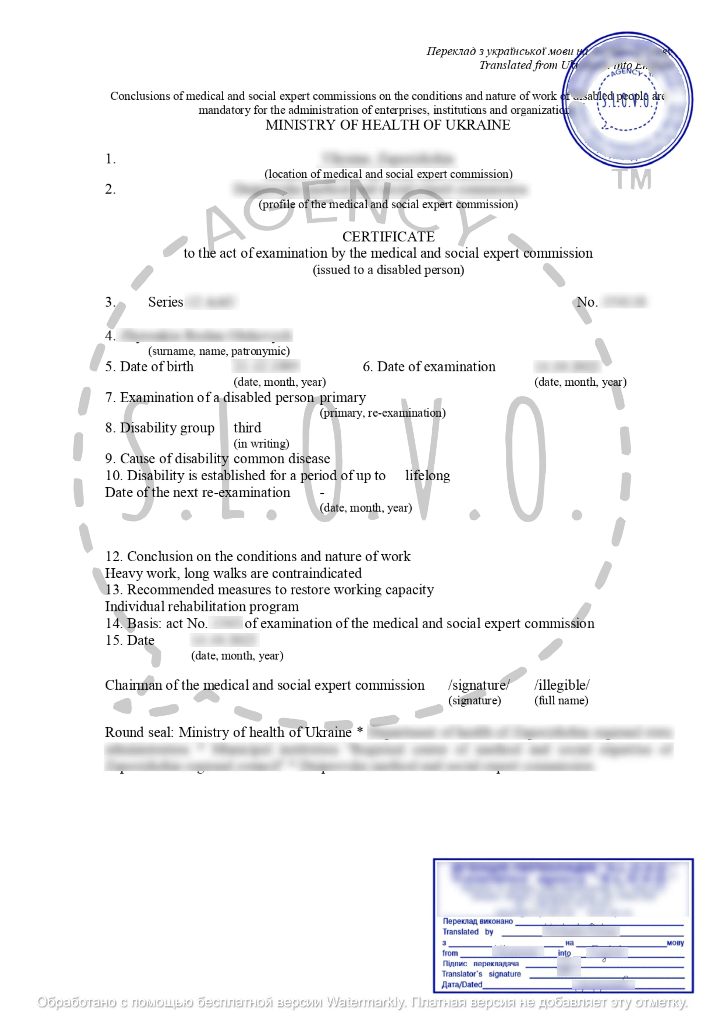 Бюро підтверджує відповідність перекладу оригіналу своєю офіційною печаткою та підписом перекладача. Цей формат часто підходить для закордонних університетів, приватних шкіл, роботодавців або банків.