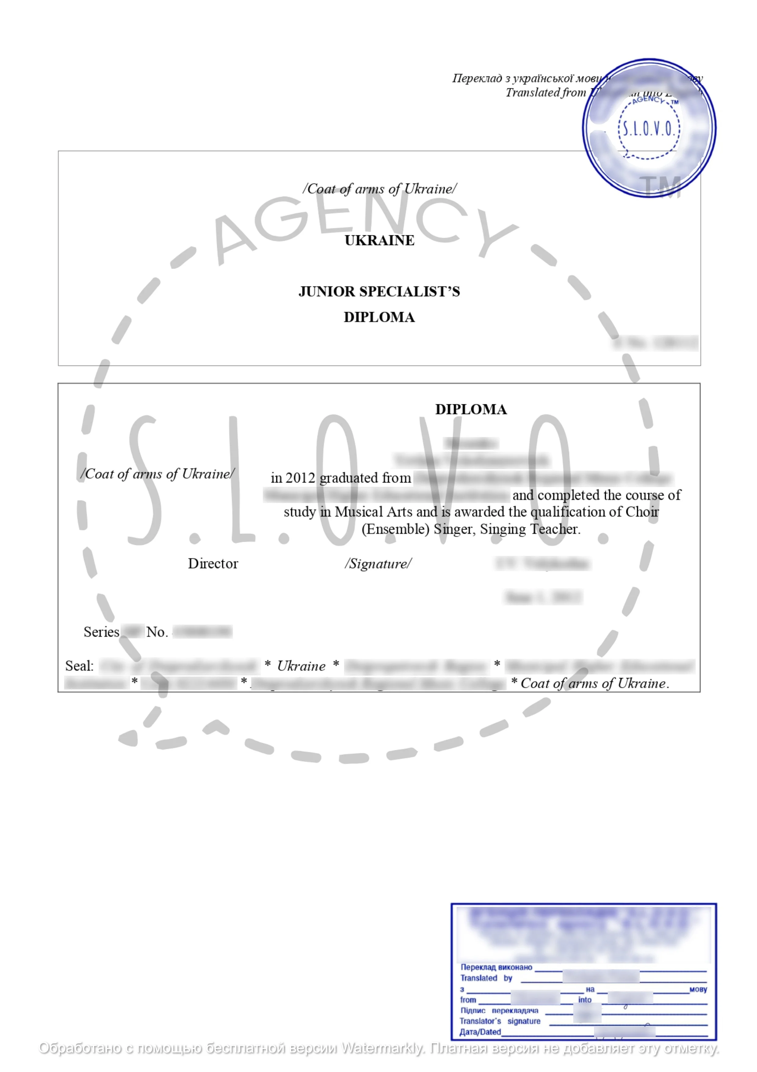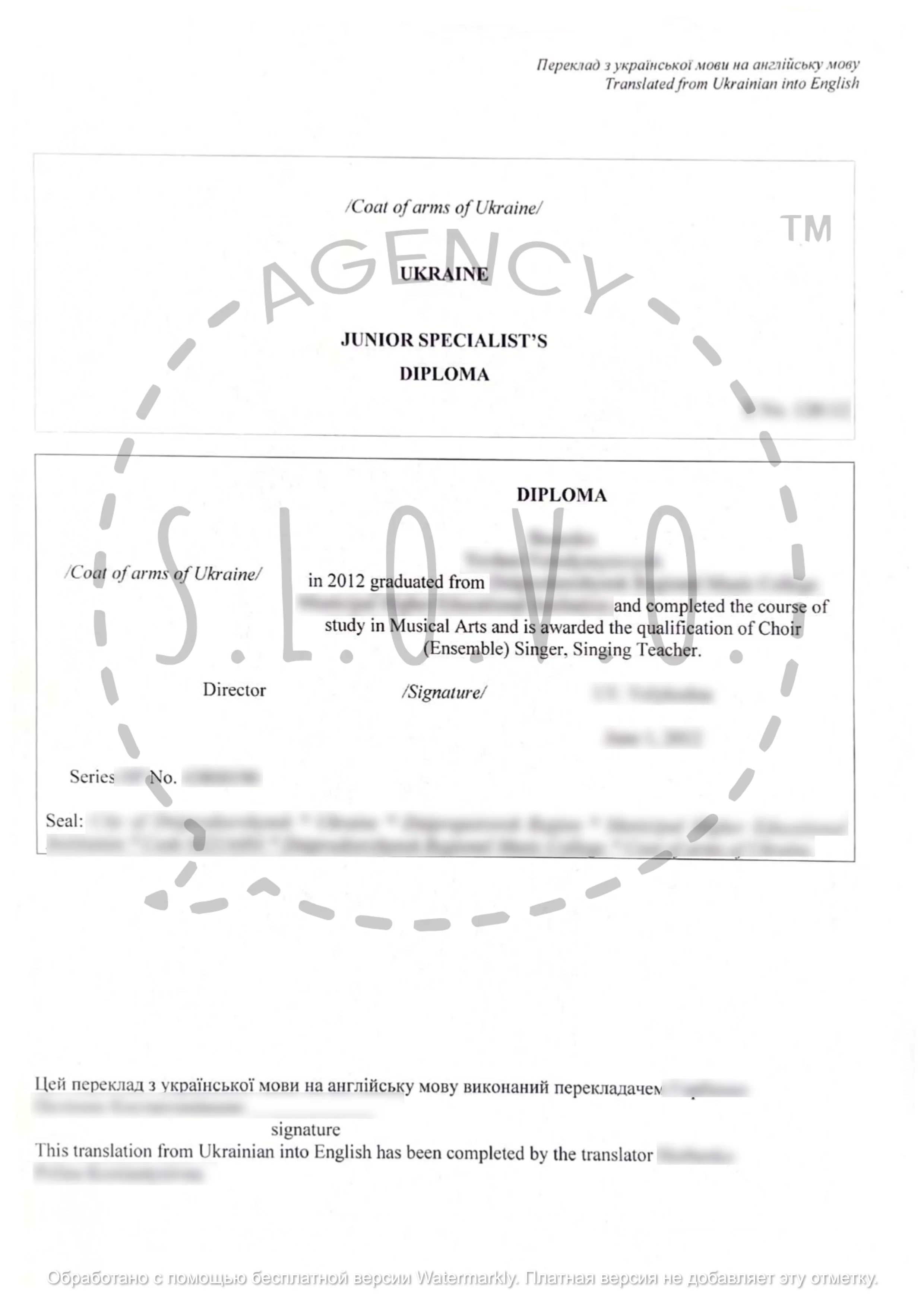 Замовити професійний переклад диплома про освіту / додатка до диплома